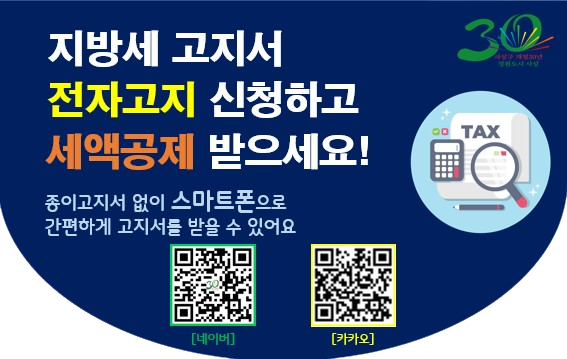 구는 간편하게 신청할 수 있도록 네이버, 카카오 등 간편결제사 신청 화면으로 바로 연결되는 QR코드를 자체 제작 후 전자고지 신청 안내문을 만들었으며, 이달 중으로 2040 청년세대 지방세 납세자에게 발송할 계획이다.
