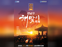 강남구, 새해 첫날 삼성해맞이공원서 '해맞이 행사' 개최서울 강남구가 강남문화재단과 함께 2026년 1월 1일 오전 7시 삼성해맞이공원에서 구민과 함께하는 '2026 새해 해맞이 행사'를 개최한다고 29일 밝혔다.삼성해맞이공원은 한강을 한눈에 볼 수 있는 경관을 배경으로 청담대교와 롯⋯