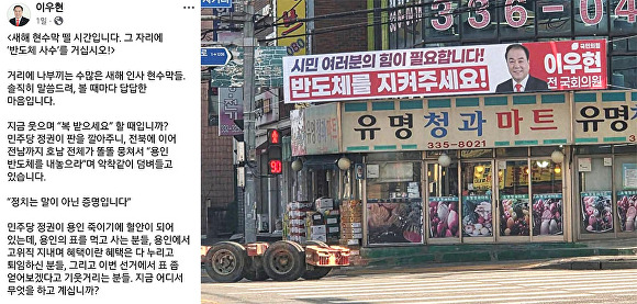 이우현 전 의원 “새해 인사 현수막 뗄 때…지금은 ‘반도체 사수’ 싸워야”용인갑에서 재선(19·20대) 국회의원을 지낸 이우현 전 의원이 반도체 국가산업단지 이전 논란과 관련해 지역 정치인들을 향해 강도 높은 비판을 쏟아냈다. 이 전 의원은 지난 9일 자신의 SNS에 ‘새해 현수막 뗄 시간입니다. 그 자리에 ‘반도체 사수’를⋯