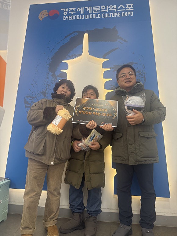경주엑스포대공원, 병오년 새해 '행운의 주인공' 5가족 선정2026년 병오년(丙午年) 새해 첫날 경주엑스포대공원을 찾은 관람객 가운데 5가족이 새해 행운의 주인공이 됐다. 경상북도문화관광공사(사장 김남일)는 1월 1일 △새해 첫 입장객 △첫 말띠 입장객 △적·토·마 입장객 등 5가족을 선정해 '럭키박스'를 증정하⋯