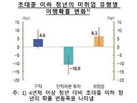 한은, 청년층 '쉬었음' 증가…눈이 높아서가 아니다초대졸(2년제·3년제 대학) 이하 청년층이 4년제 대졸 이상 청년층보다 미취업 상태 중 '쉬었음'에 머물 확률이 6.3%포인트(p) 높은 것으로 나타났다.취업 가능성이나 기대 소득을 높이기 위해 교육·훈련에 참여하는 미취업 상태⋯