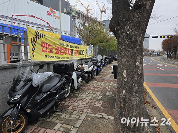 청주 SK하이닉스 M15X 공장 인근 ‘무법지대’ 전락충북 청주시 흥덕구 외북동 SK하이닉스 M15X 공장 인근 인도가 오토바이와 차량의 불법 주·정차로 몸살을 앓고 있다. 인도가 사실상 주차장으로 전락하면서 보행자들의 불편은 물론 안전까지 위협받고 있지만, 단속과 제도적 한계로 뚜렷한 해결책을 찾지 못하⋯