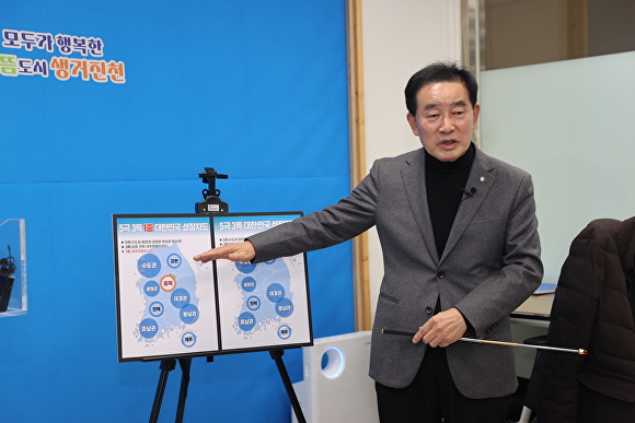 송기섭 진천군수, 충북특별중심도 지정 재차 강조송기섭 충북 진천군수가 ‘충북특별중심도’ 지정을 재차 제안했다. 송 군수는 23일 진천군청 브리핑룸에서 기자회견을 열고 “충북의 홀대를 끝내고 국가 균형발전을 완성할 제도적 보완책으로 충북특별중심도가 포함된 ‘5극 3특 1중’ 전략이 필요하다”며 이같이⋯