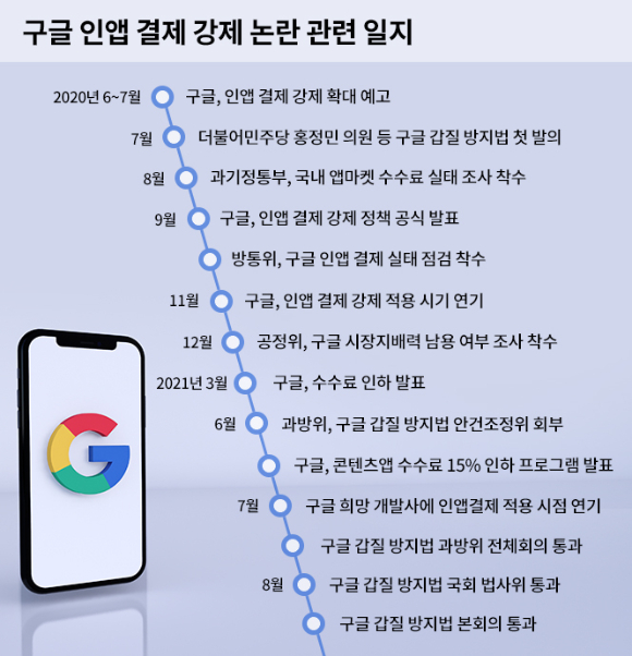 [아이뉴스24 윤선훈 기자] 앱 마켓 사업자들의 인앱결제 의무화를 막는 구글 인앱결제 강제 방지법(전기통신사업법 개정안)이 지난달 31일 국회를 통과했다. 이에 게임업계와 웹툰, 웹소설 등 콘텐츠 업계에 미칠 영향도 주목된다.