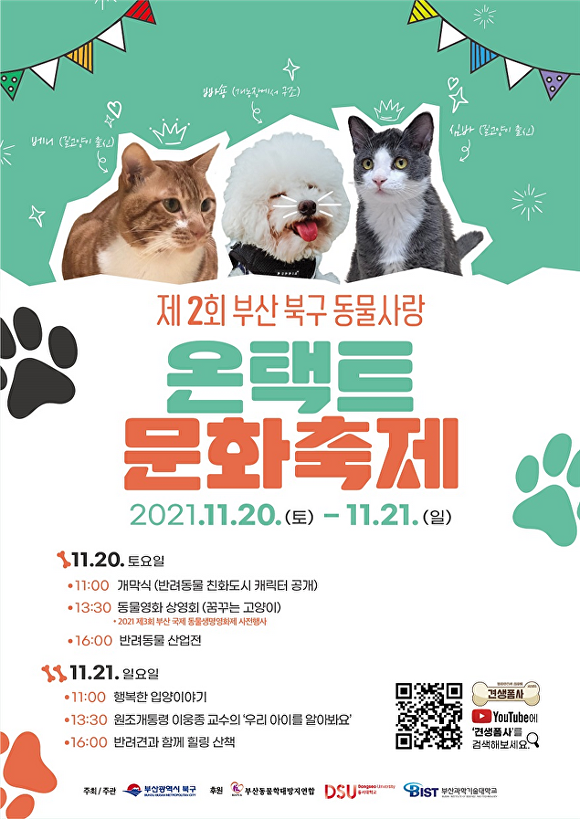 지난해 신종 코로나바이러스 감염증(코로나19) 여파로 비대면으로 개최한 제1회 동물사랑 온택트 문화축제와 달리 이번 제2회 동물사랑 온택트 문화축제는 단계적 일상회복에 따라 온오프라인으로 병행 진행된다.