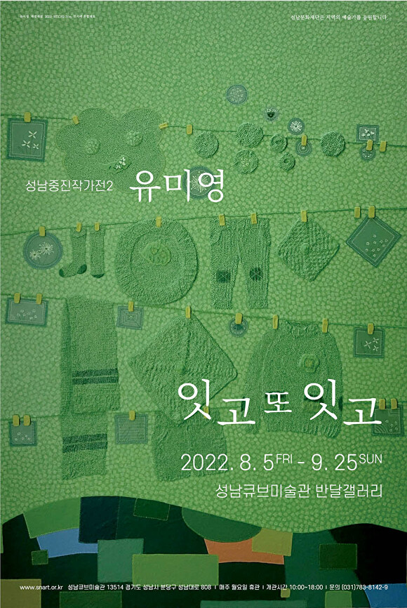 [아이뉴스24 변준성 기자] 성남문화재단이 지역의 중장년 예술가를 소개하는 ‘2022 성남중진작가전’의 두 번째 전시로 유미영 작가의 ‘잇고 또 잇고’ 전시를 오는 5일부터 내달 25일까지 성남큐브미술관 반달갤러리에서 개최한다.