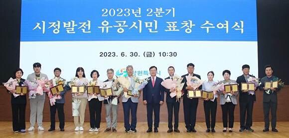 [아이뉴스24 이상욱 기자] 경상남도 창원시는 30일 창원시청 시민홀에서 ‘2023년도 2분기 시정발전 유공 시민 표창 수여식’을 개최했다.