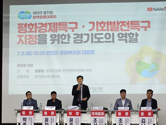 [아이뉴스24 김아라 기자] 윤종영 경기도의회 안전행정위원회 의원(국민의힘, 연천)이 좌장을 맡은 '평화경제특구·기회발전특구 지정 방안 모색' 정책 토론회가 지난 3일 연천군 종합복지관 대강당에서 개최됐다.