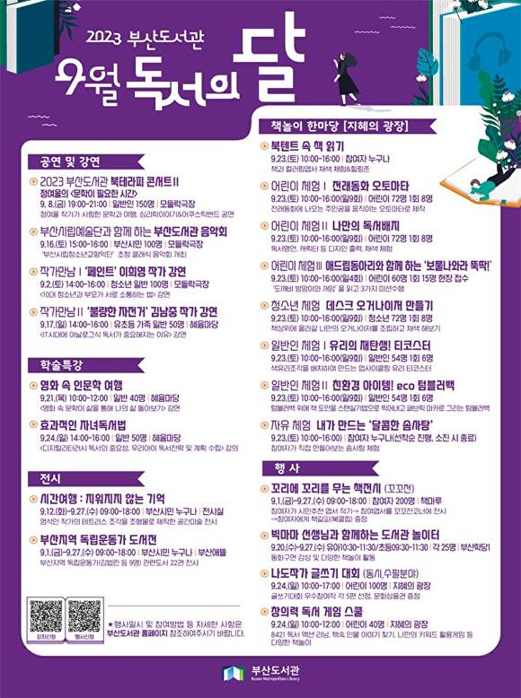 부산도서관, 독서의 달 9월 맞아 복합문화행사 개최