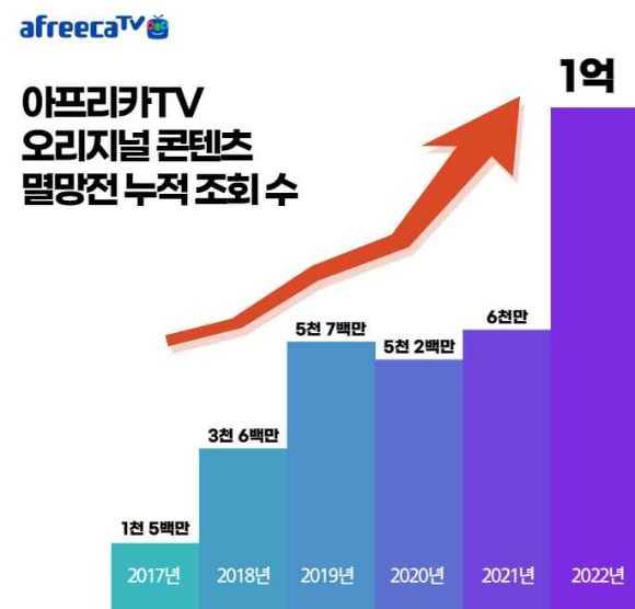 [아이뉴스24 문영수 기자] 지난 10년간 아프리카TV 멸망전의 누적 시청자 수가 총 4억건을 넘은 것으로 나타났다.