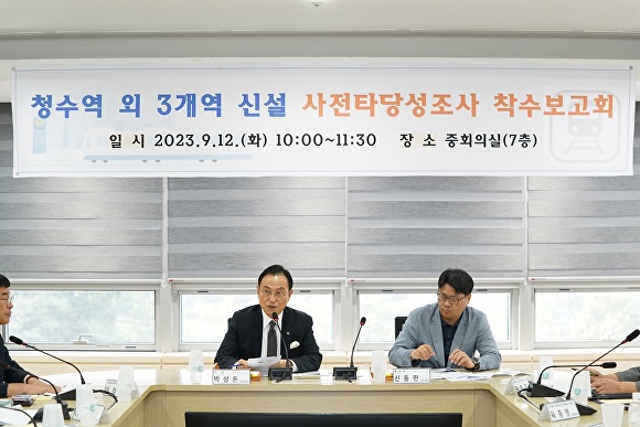 시는 12일 시청 중회의실에서 박상돈 시장 등 관계자와 외부 전문가들이 참석한 가운데 ‘수도권전철 청수역 외 3개역 신설 사전타당성조사’ 착수보고회를 개최했다.