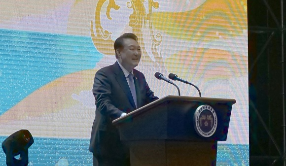윤석열 대통령도 이날 뉴욕 유엔총회 일정을 마치고 귀국한 즉시 참석해 축하인사를 전했다.