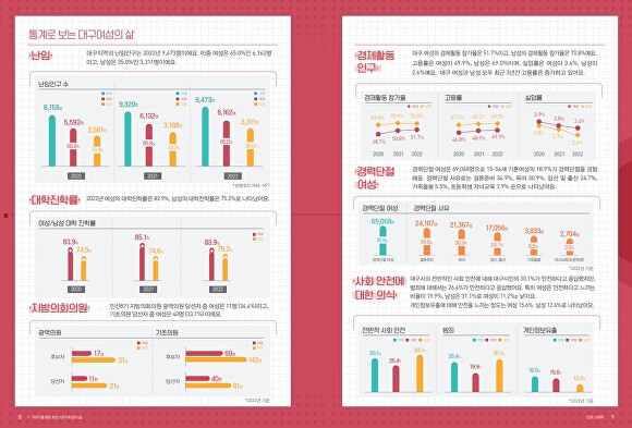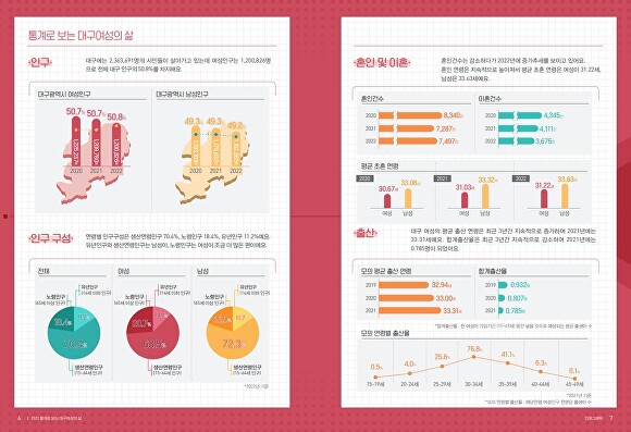 '통계로 보는 대구여성의 삶'은 대구행복진흥원에서 2015년부터 대구시 여성가족정책 연구개발지원 예산으로 진행됐다.