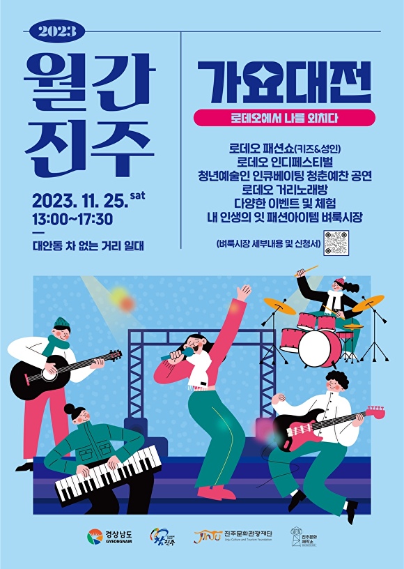 진주문화관광재단 관계자는 “월간진주는 내달 23일 토요일까지 매월 둘째, 넷째 주 토요일에 MZ(밀레니엄+Z세대)대전, 연말대전을 주제로 진행될 예정”이라며 “행사에 많은 관심과 참여 부탁드린다”고 말했다.