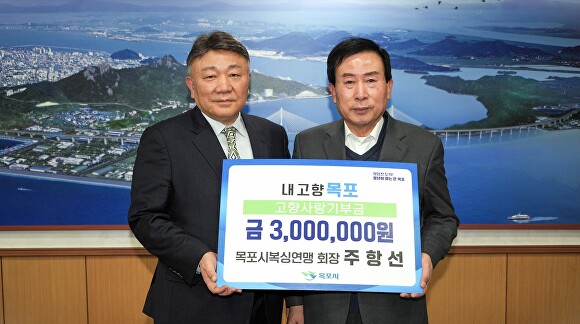 주항선 목포시복싱연맹 회장이 고향사랑기부금 300만원을 기탁하며 고향 목포의 체육발전을 위해 앞장서고 있다. [사진=목포시] /목포=대성수 기자(dss@inews24.com) 좋아요 응원수 주요뉴스새로고침
