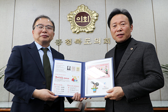 충북도의회는 8일 의장실에서 황영호 의장과 안광무 대한결핵협회 충북지회장 등이 참석한 가운데 2023년 크리스마스 씰 증정식을 가졌다고 밝혔다.