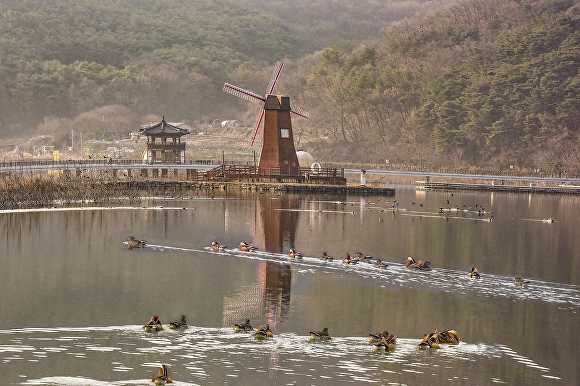 대구 달성군 송해공원 옥연지 원앙들은 매년 겨울이면 찾아오는 달성의 귀중한 손님으로 군민들의 사랑을 끊임없이 받고 있다.