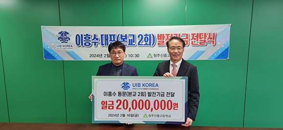 [아이뉴스24 안영록 기자] 충북 청주신흥고등학교 2회 졸업생인 이흥수 ㈜UIB 코리아 대표가 모교인 신흥고에 발전기금 기부를 약속했다.