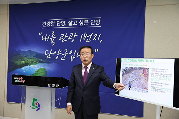 김 군수는 “지질학적 가치가 높은 단양군 전체를 유네스코 세계지질공원으로 지정받아 세계 속 단양 고유브랜드를 창출하겠다”며 “이는 단양이 문화·관광·고고·생태·경관 등을 결합한 국제적 관광지로 가는 첫 단추”라고 강조했다.