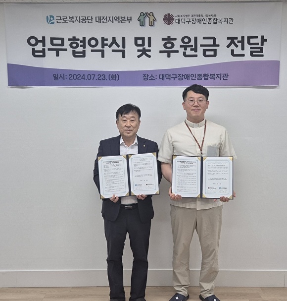 [아이뉴스24 박희석 기자] 근로복지공단 대전지역본부와 대덕구장애인종합복지관이 23일 취업 지원 프로그램 추진과 봉사활동에 적극 협력하기로 협약했다.