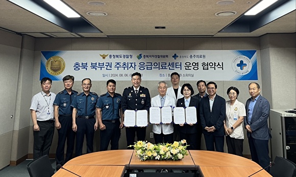 충북경찰청(청장 정상진)은 6일 자치경찰위원회, 충주의료원과 북부권 주취자 응급의료센터 개설 업무협약을 맺었다.