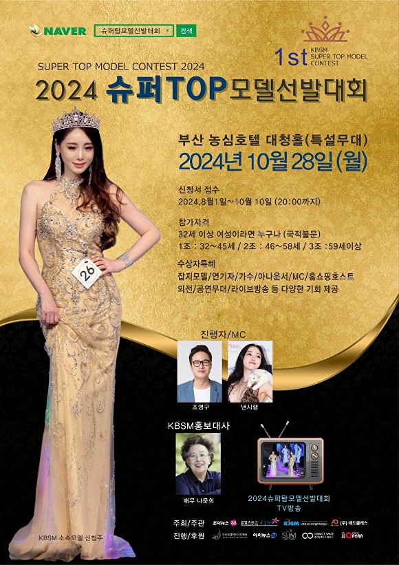 [아이뉴스24 정예진 기자] 건강한 아름다움을 선보일 수 있는 무대인 ‘2024 슈퍼 TOP 모델 선발대회’가 내달 28일 부산광역시 농심호텔 대청홀에서 열린다.