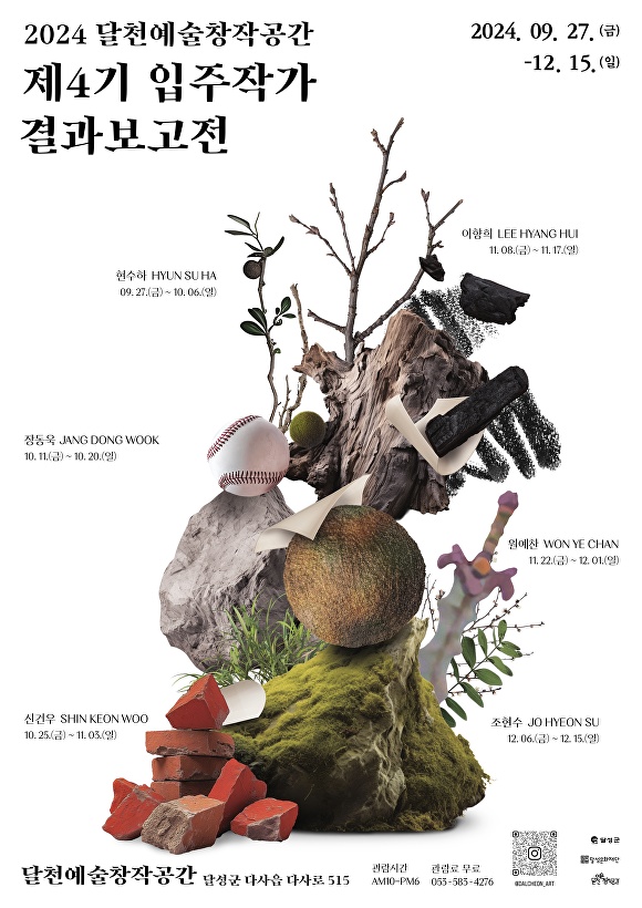 [아이뉴스24 이창재 기자] 대구 (재)달성문화재단(이사장 최재훈)이 운영하는 복합문화공간 달천예술창작공간은 오는 27일부터 12월 15일까지 ‘2024 달천예술창작공간 제4기 입주작가 결과보고전’을 개최한다고 19일 밝혔다.