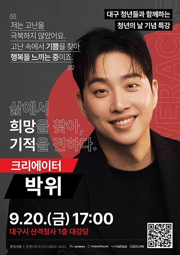 부대행사에서는 ‘위라클’로 활동하고 있는 박위를 초청해 ‘모두에게 기적을!’이라는 주제로 청년들에게 희망과 용기를 주는 메시지를 전할 예정이다.