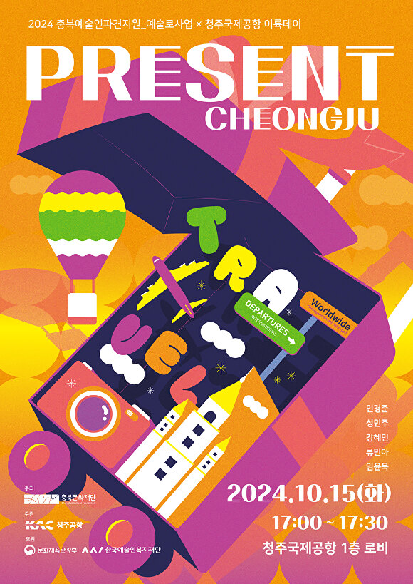 이번 행사는 청주공항과 충북문화재단의 첫 협업 사업이다. 그동안 양 기관은 공항 이용객이 예술을 체험할 수 있는 기회를 넓히기 위해 ‘예술가 파견사업’과 ‘월 1회 정기회의’를 갖는 등 꾸준한 교류를 해왔다.