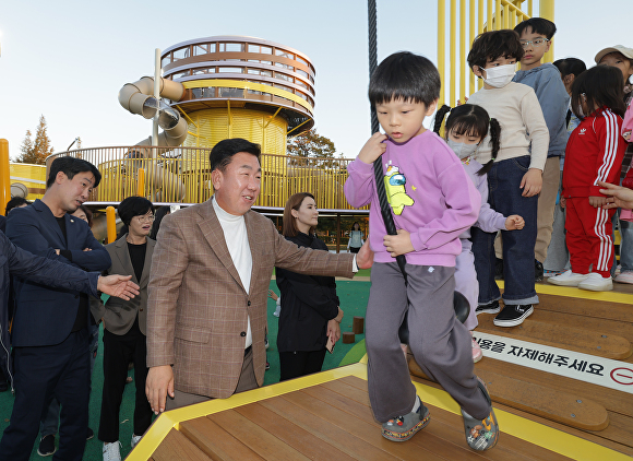 유아 놀이터는 △스파이더 네트 놀이대 △오두막놀이대 △빛 그림자 놀이대 등으로 구성됐다. 무장애놀이터에는 △무장애 회전놀이대 △그네 4종 △누워서 타는 시소 등이 설치됐다.
