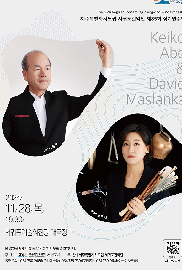 타악기의 거장이라 불리는 ‘게이코 아베’와 현대 관악계의 위대한 작곡가 ‘데이비드 마슬란카’의 곡을 선보이는 이번 정기연주회는 이동호 상임지휘자와 한국예술종합학교 교수로 재직 중인 퍼커셔니스트 김은혜가 함께한다.