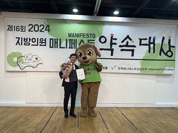 [아이뉴스24 정예진 기자] 박종율 부산광역시의원(국민의힘, 북구4)이 한국매니페스토실천본부에서 주최하는 ‘제16회 2024 지방의원 매니페스토 약속대상’에서 공약이행 부문 우수상을 수상했다.