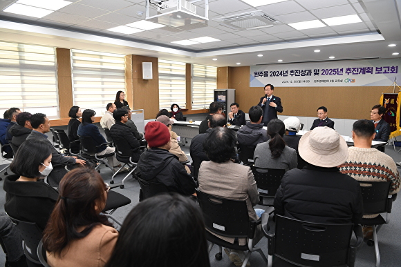 지난 30일 완주군은 완주경제센터에서 ‘완주몰’에 입점한 입점사 관계자들과 2024년 추진성과 및 2025년 추진계획 보고회를 열었다.