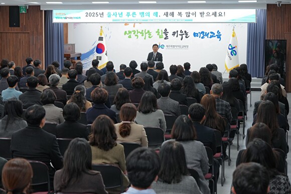 [아이뉴스24 박태진 기자] 제주특별자치도교육청은 을사년 새해를 맞이하여 2일 본청 대회의실에서 전 직원이 참석한 가운데 2025년 시무식을 열었다.