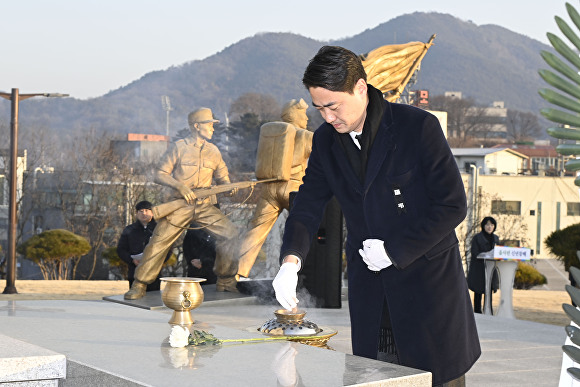 참배는 국기에 대한 경례, 순국선열과 호국영령에 대한 묵념, 헌화 및 분향으로 진행됐고 이날 참석자들은 국가와 민족을 위해 목숨을 바친 순국선열과 호국영령들의 숭고한 넋을 기리고 새해 군정 및 지역발전을 기원했다.
