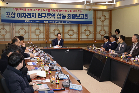 포항시는 7일 시청 중회의실에서 '이차전지산업을 통한 포항시 발전 방안'과 '이차전지 오픈 이노베이션센터 구축' 기본구상 용역에 대한 최종 통합보고회를 열었다.