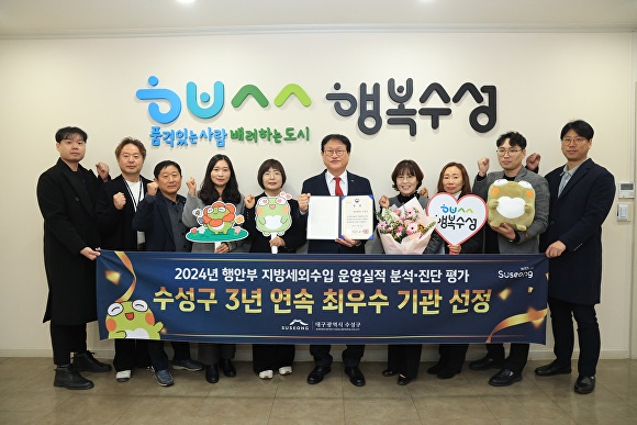 [아이뉴스24 이창재 기자] 대구 수성구(구청장 김대권)는 행정안전부 주관 ‘2024년 지방세외수입 운영실적 분석 진단’ 평가에서 최우수 기관으로 3년 연속 선정됐다고 14일 밝혔다.