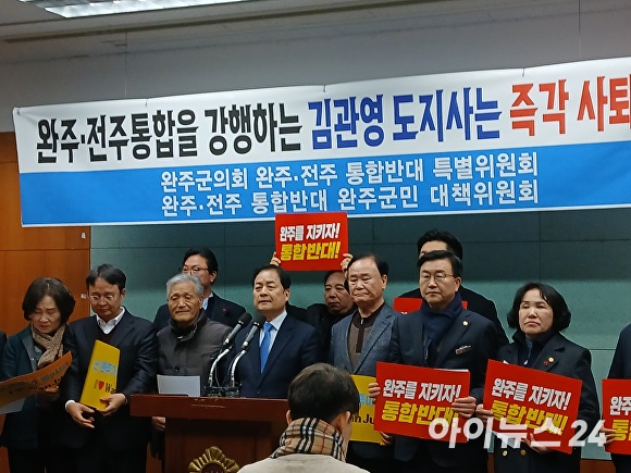 이들은 “완주군민의 뜻이 곧 완주군의 미래인 만큼 김관영 도지사는 도의회에 제출한 조례안을 폐기하고, 통합추진을 중단하라”고 요구했다.