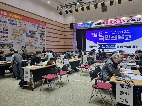 이날 현장에서는 사전 및 현장 접수된 100여 건에 대한 포항시민들의 고충과 애로사항을 상담했다. 시민들의 민원 사항인 △산업농림환경 △재정세무 △교통도로 △각종 생활 불편 사항 등을 현장에 배치된 전문 조사관과 포항시 공무원들이 신속하게 처리하며 시민 만족도를 높였다.