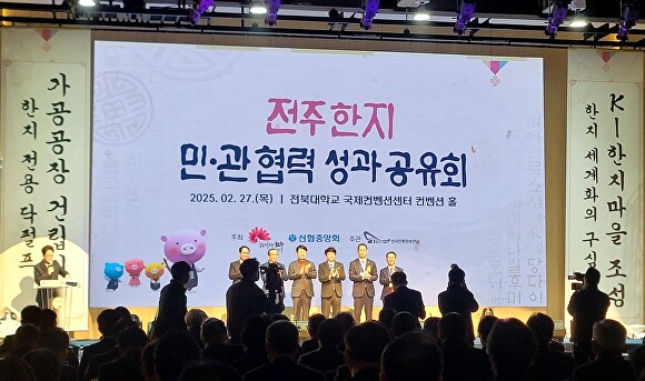 시와 신협중앙회는 27일 전북대학교 국제컨벤션센터에서 전주시 한지산업 관계자와 신협 임직원 등 220여 명이 참석한 가운데 ‘전주한지 민·관 협력 성과공유회’를 개최했다.