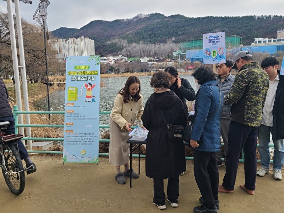 또 미세먼지 저감 사업의 일환으로 가정용 친환경보일러 설치(교체) 지원, 가스열펌프 배출가스 저감장치 부착 지원, 배출가스 5등급 차량 운행 제한 ,노후 자동차 조기 폐차 지원사업 등을 안내하며, 고농도 미세먼지 발생 시 행동 요령에 대한 안내문과 미세먼지(황사) 마스크도 배부했다.