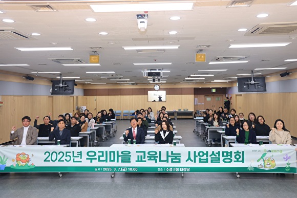 [아이뉴스24 이창재 기자] 대구 수성구(구청장 김대권)는 지난 7일 수성구청 대강당에서 ‘2025년 우리마을 교육나눔 사업설명회’를 개최했다. 이날 행사는 8개 마을 추진위원과 동 관계자 등 50여 명이 참석했다.