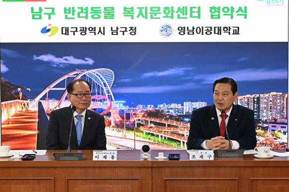 [아이뉴스24 이창재 기자] 대구 남구(청장 조재구)는 지난 10일 남구청 2층 회의실에서 영남이공대학교와 '남구 반려동물 복지문화센터(가칭)'조성을 위한 업무협약(MOU)을 체결했다.