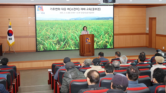 [아이뉴스24 임정규 기자] 경기도 안성시농업기술센터는 11일 비봉관에서 ‘2025년 기후변화 대응 벼 재배기술 교육’을 개최했다고 밝혔다.