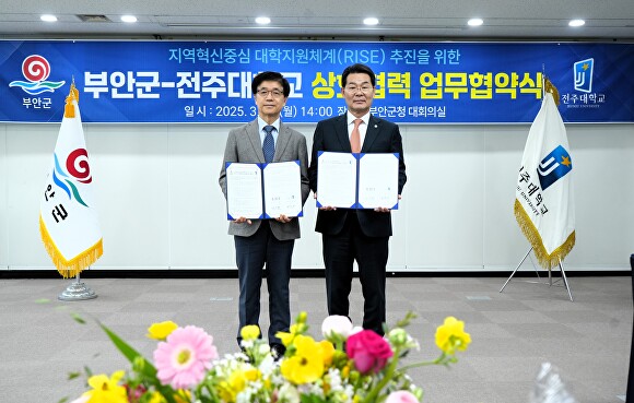 [아이뉴스24 박종수 기자] 전북자치도 부안군(군수 권익현)과 전주대학교(총장 박진배)가 지역 혁신 중심 대학 지원체계(RISE‧Regional Innovation System & Education) 사업의 성공적인 추진을 위해 협력에 나섰다.