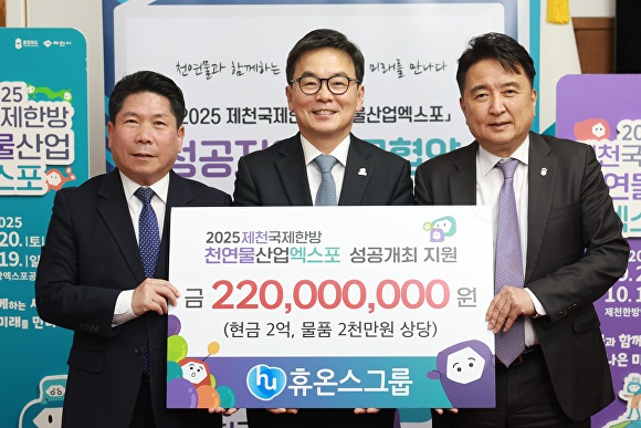[아이뉴스24 윤재원 기자] 휴온스그룹(휴온스글로벌·휴온스 대표이사 송수영)이 2025제천국제한방천연물산업엑스포의 성공 개최를 기원하며 엑스포 조직위원회(위원장 김영환 충북지사)에 후원금 2억2000만원을 기탁했다. 현금 2억원과 현물 2000만원 상당이다.