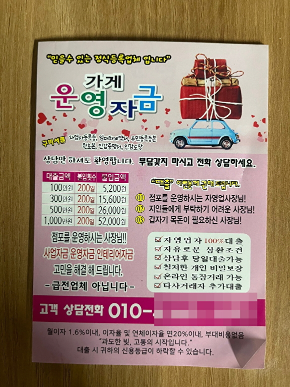 아이뉴스24 취재를 종합하면, 평택 세교동 거주 70대 A씨는 최근 대출광고 전단지를 통해 대부업자 B씨로부터 1,500만 원 대출을 받았다.