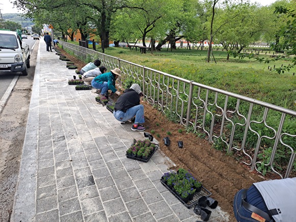 [아이뉴스24 이창재 기자] 경북 성주군 성주읍 주민자치위원회(위원장 이원기)가 23일, 봄을 맞아 성밖숲 주변에 로벨리아 꽃 4,000포기를 식재하며 꽃길 조성에 나섰다.