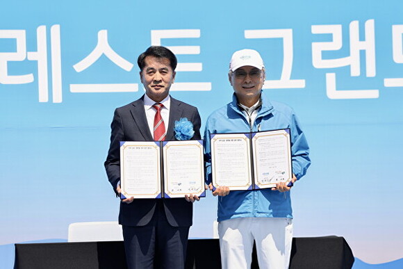 한편 애터미는 이날 속리산 포레스트 입구에서 태평휴게소까지 왕복 9.3km 거리를 걷는 포레스트 워크 행사에서 모인 5000만원을 보은군에 기부했다.