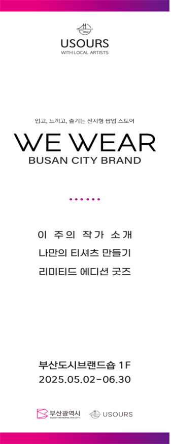 어스아워스 브랜드와 협업한 부산 브랜드숍은 티셔츠를 통해 부산의 정체성을 알리고 부산 기반 지역 예술가 8인의 작가들과 협업해 도시브랜드의 의미를 일상에서 경험할 수 있는 전시를 선보인다.
